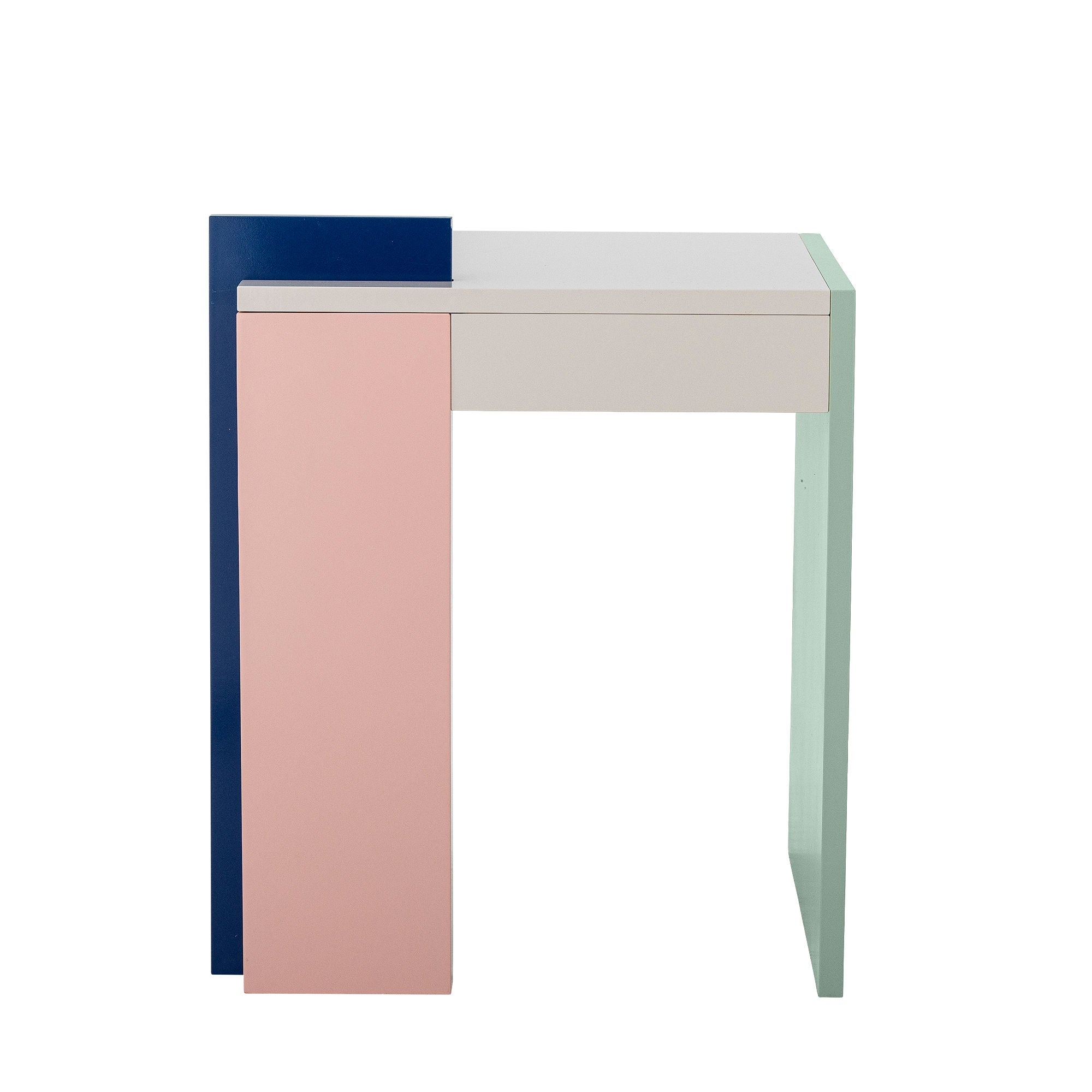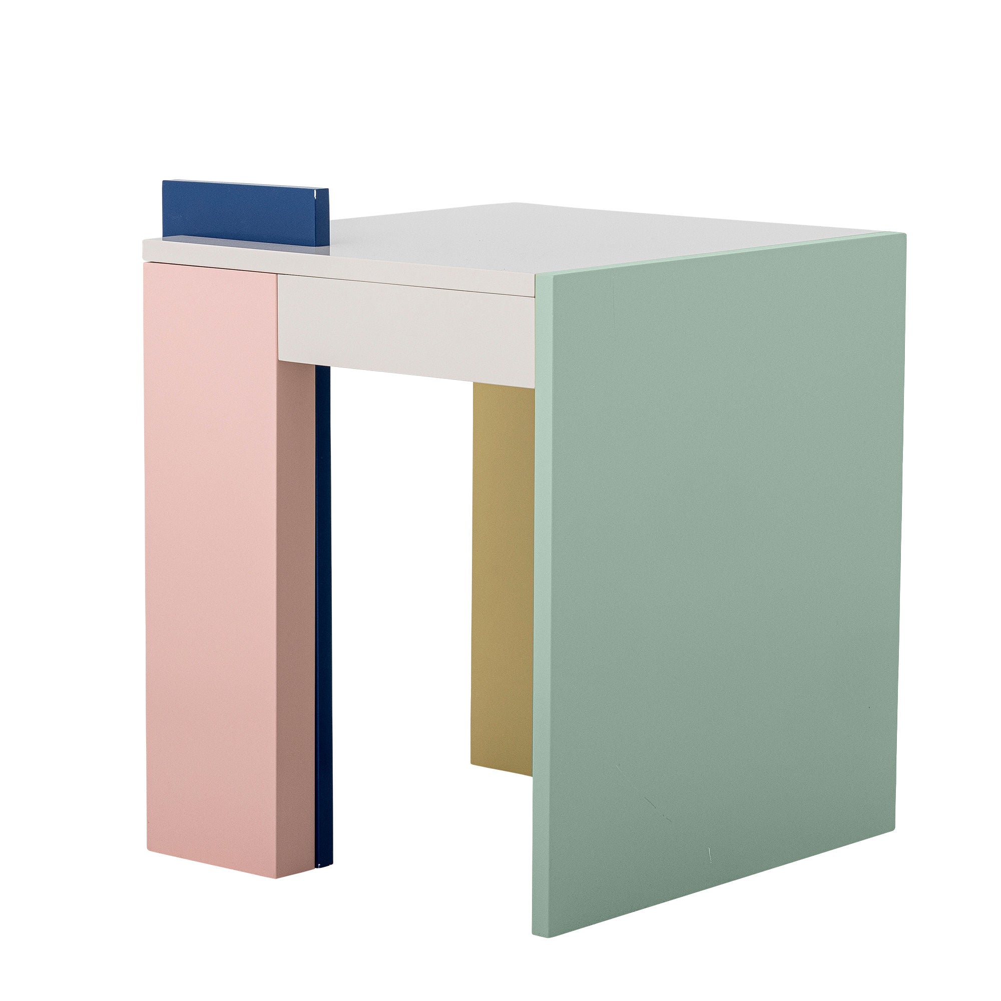The Banjo Side Table by Bloomingville is a compact piece made of MDF with a painted surface. It features a light rose tone with subtle detailing in warm yellow and soft green, adding gentle contrast to the smooth finish.