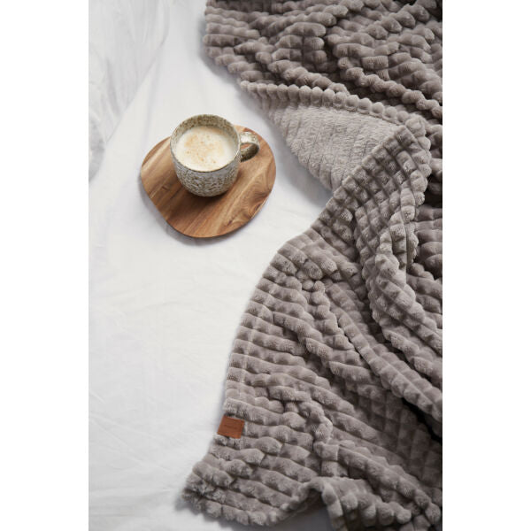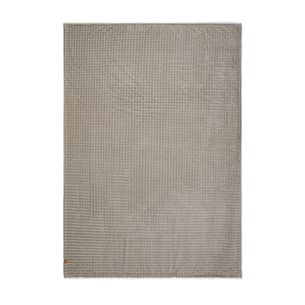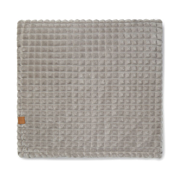 Blanket featuring a checkered cut-out pattern, crafted from 69% recycled PET. Certified by GRS (Global Recycled Standard), GRS certification guarantees that the entire supply chain of the recycled materials is certified.