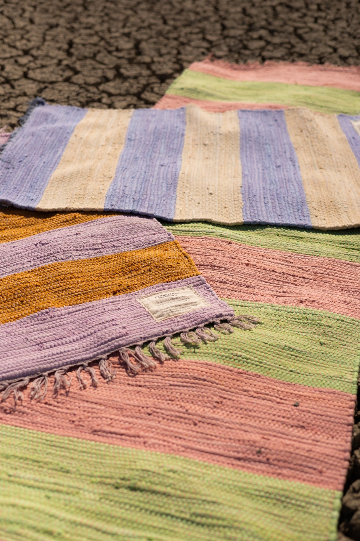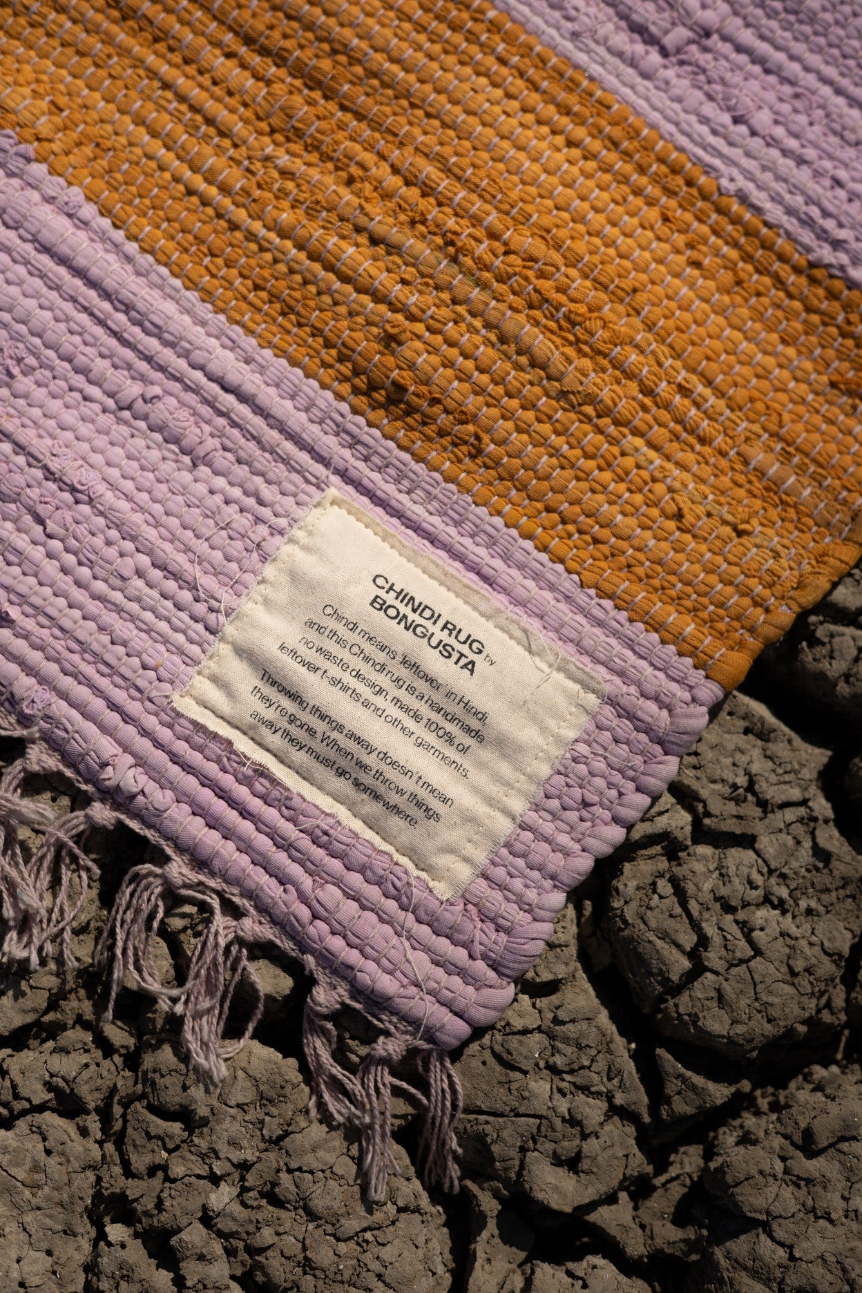 Derived from the Hindi term, Chindi, meaning 'leftovers', this rug is handwoven from recycled cotton t-shirts and clothing scraps. Each individual thread thereby gives new life to discarded clothes by transforming them into a decorative rug.