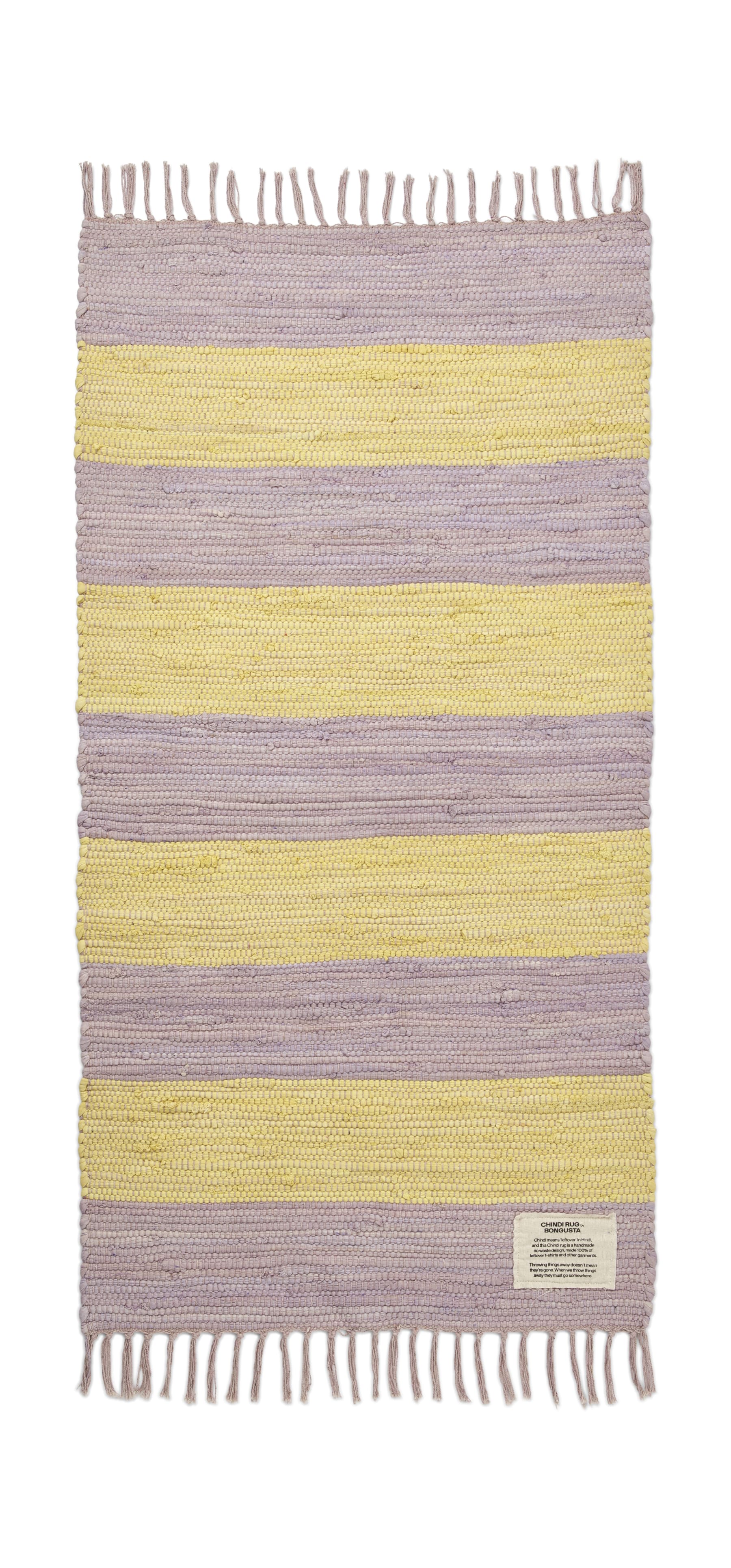 Derived from the Hindi term, Chindi, meaning 'leftovers', this rug is handwoven from recycled cotton t-shirts and clothing scraps. Each individual thread thereby gives new life to discarded clothes by transforming them into a decorative rug.