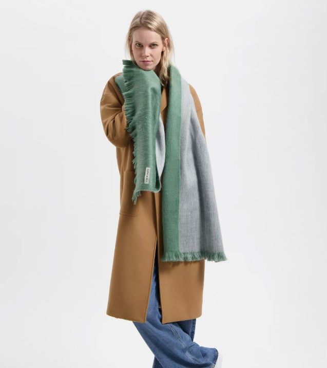 Double Scarf Light Grey / Emerald Green
