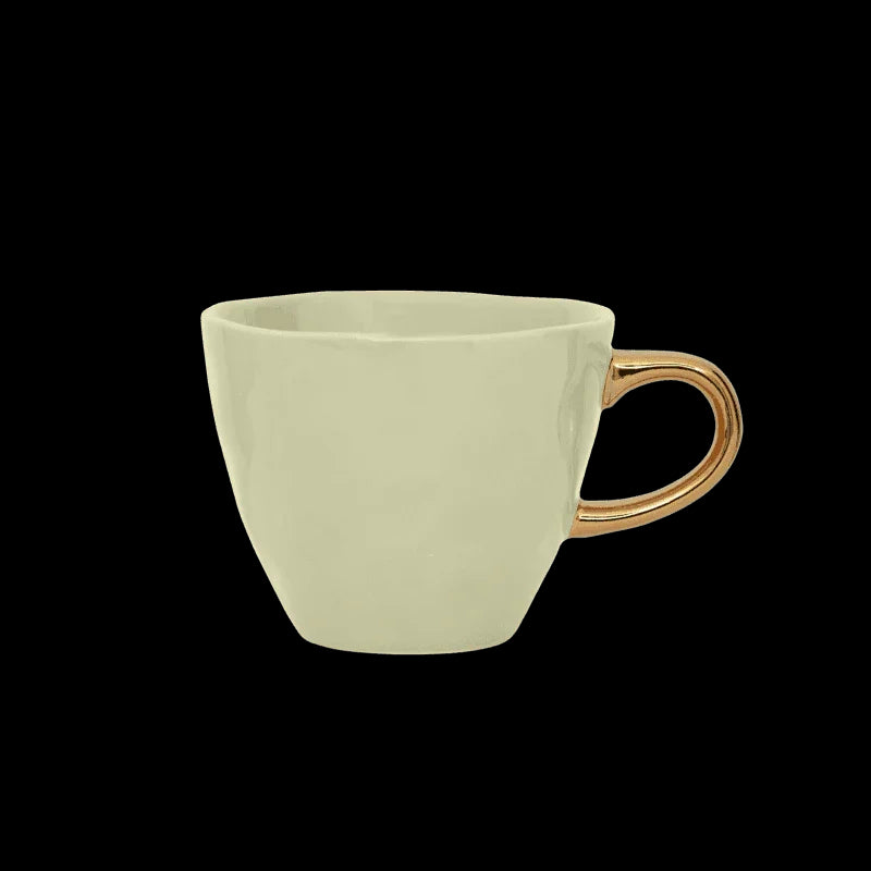 Urban Nature Culture's Good Morning collection enriches each morning with a touch of luxury. The iconic golden detail elevates breakfast moments, whether shared with friends or savored solo. Introducing the new evergreen color, Urban Nature Culture presents a ceramic Coffee Cup, perfect for elegant table settings. Complete the look with matching plates for a cohesive dining experience. Remember to handwash to preserve the golden accents. Type: Pale Green.