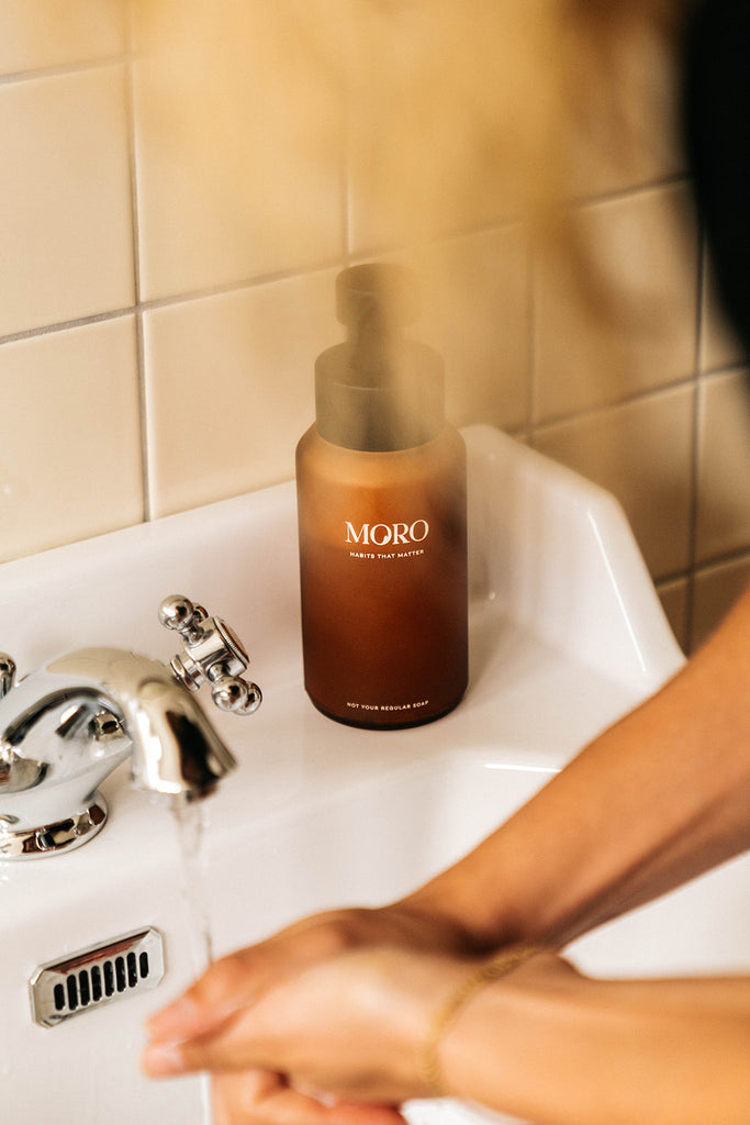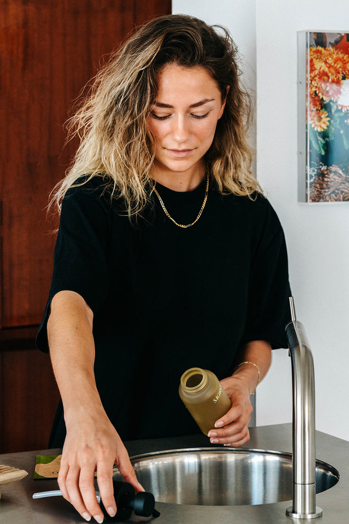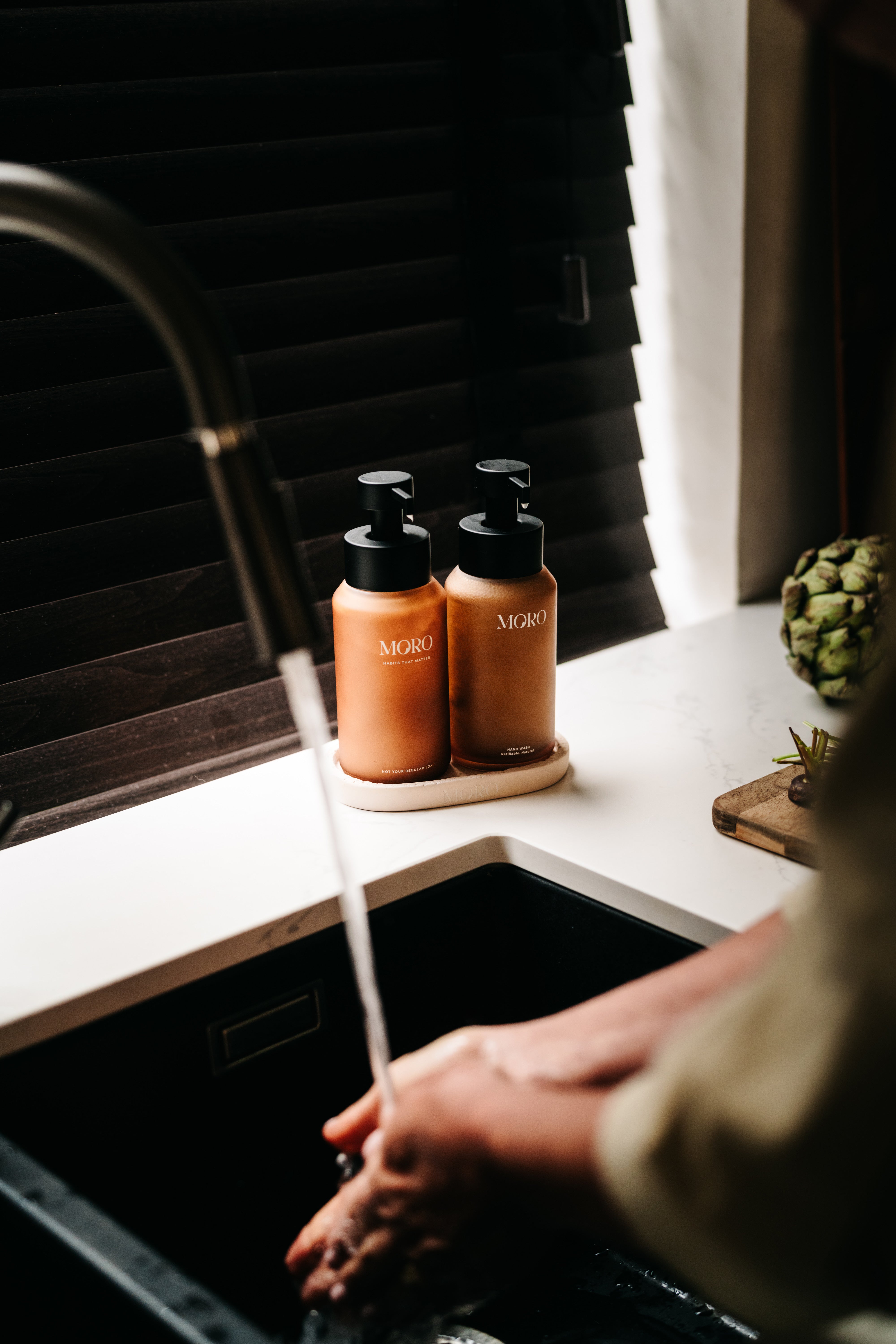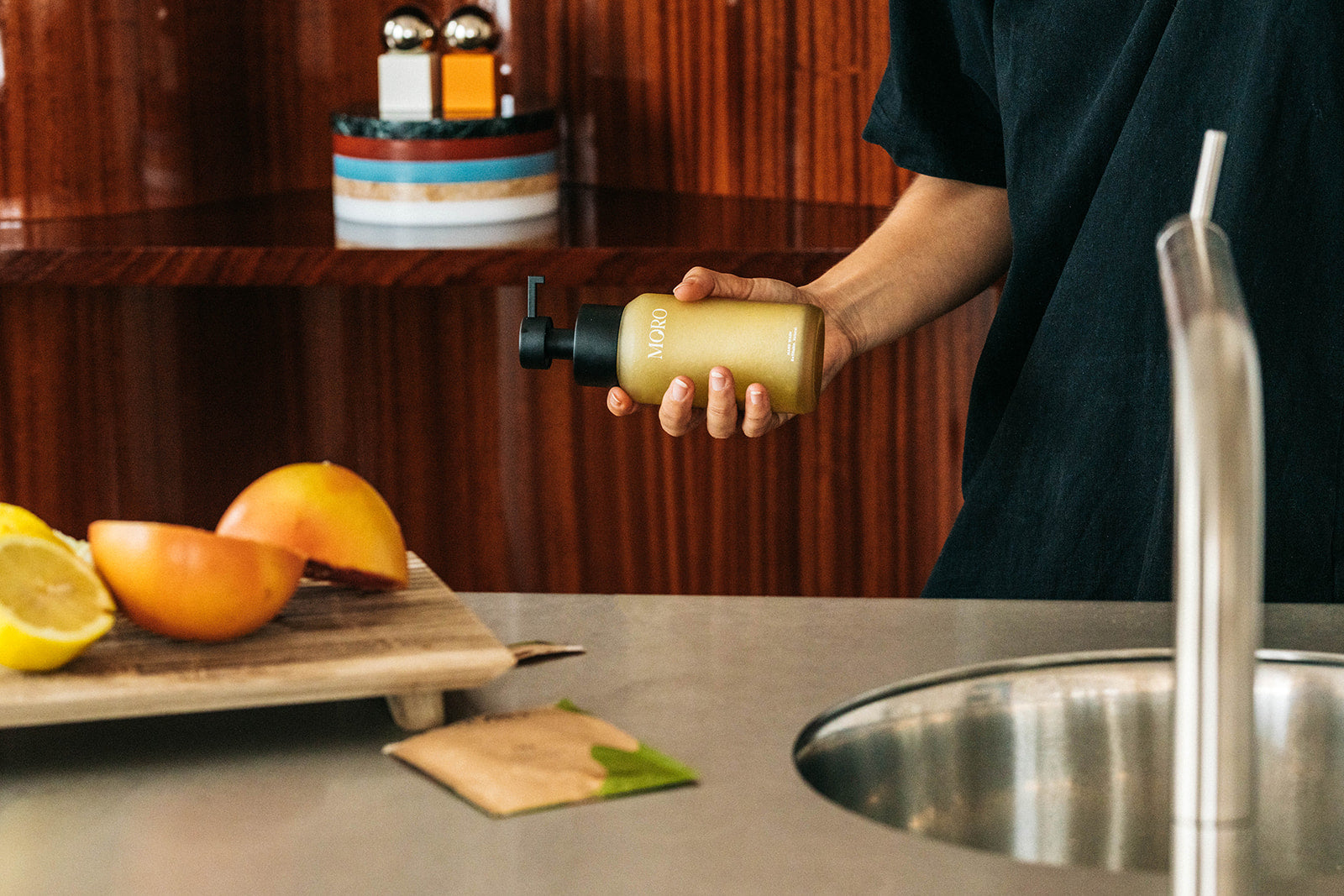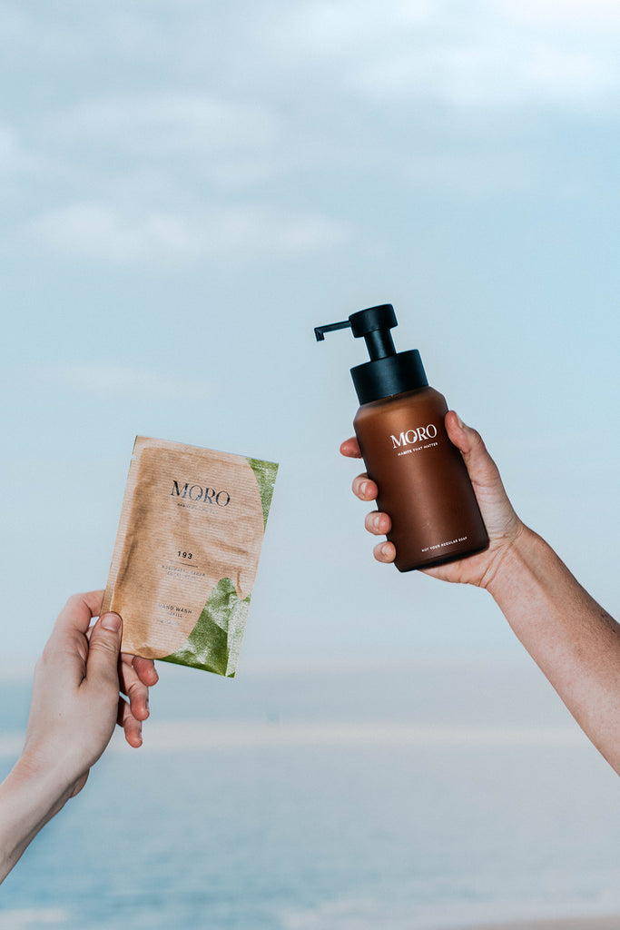 Our powder-to-gel Hand Wash helps you cut plastic waste easily. Just add tap water, shake, and you're good to go. Because why ship 80% water when you already have a tap at home? Our signature bottle are made from glass and designed to be refilled — again and again.