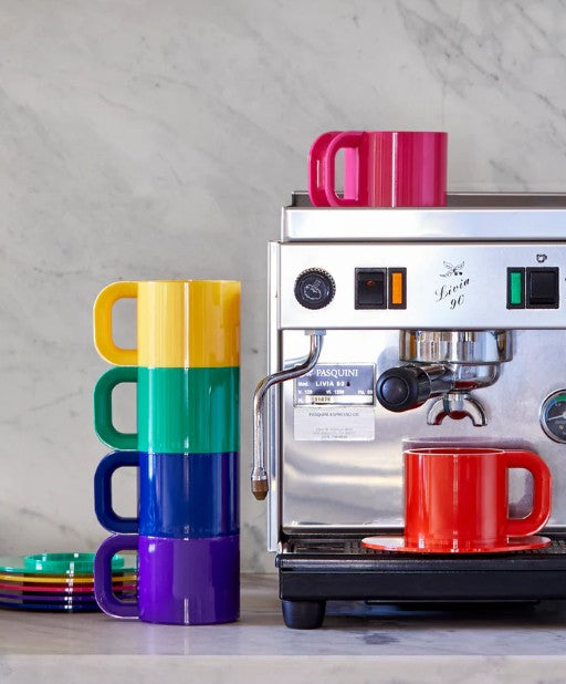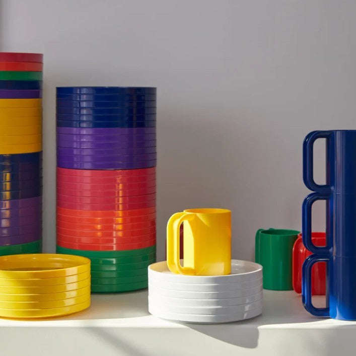 Stackable, colorful, and fun – when you look at this sleek stacking dinnerware you can’t help but smile. Loved worldwide, the Max Collection was designed by Lella and Massimo Vignelli, who The New York Times described as “a two-person design army with a shared aesthetic that was sleek and intelligent.”