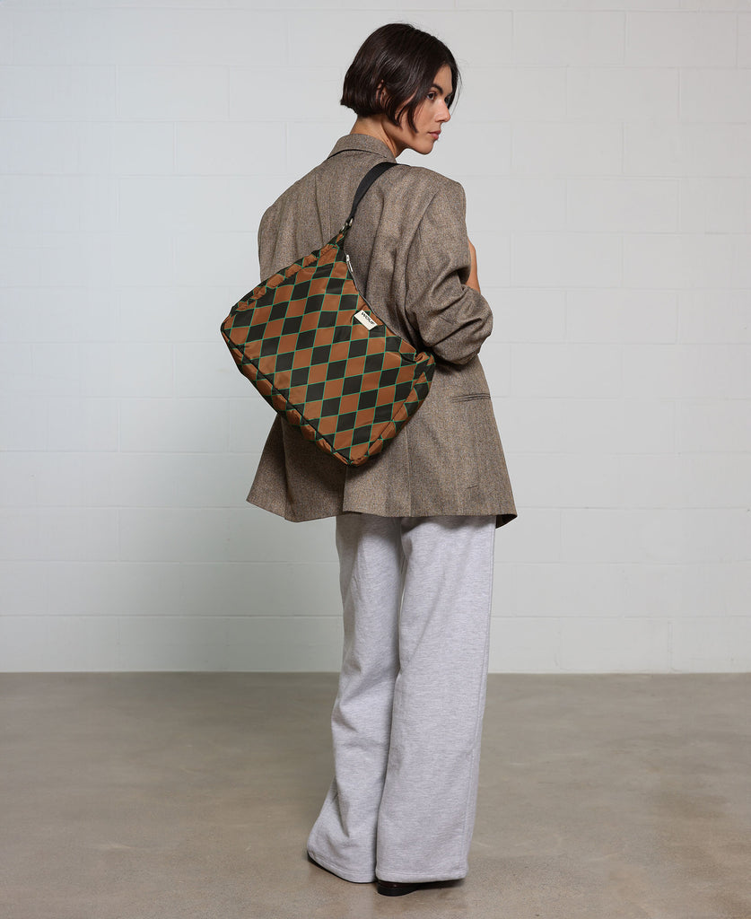 The Jester hobo bag, made from 100% recycled fabrics, is designed for modern everyday use. It features a water-repellent finish, an adjustable strap for shoulder or crossbody wear, a main zipped compartment, and an inner pocket to keep your essentials organised.
