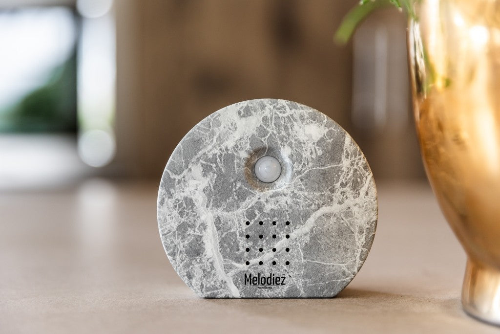 Bring the tranquility of nature into your home with the unique Melodiez Nature box! Designed to awaken your senses and offer a moment of pure relaxation with enchanting sounds. The built-in motion sensor automatically starts playing the sound as soon as someone enters. The box features a touch button to choose from three playback periods: 40, 80, or 120 seconds . A second touch button allows you to switch between four sound options: two bird, jungle, and ocean sounds.