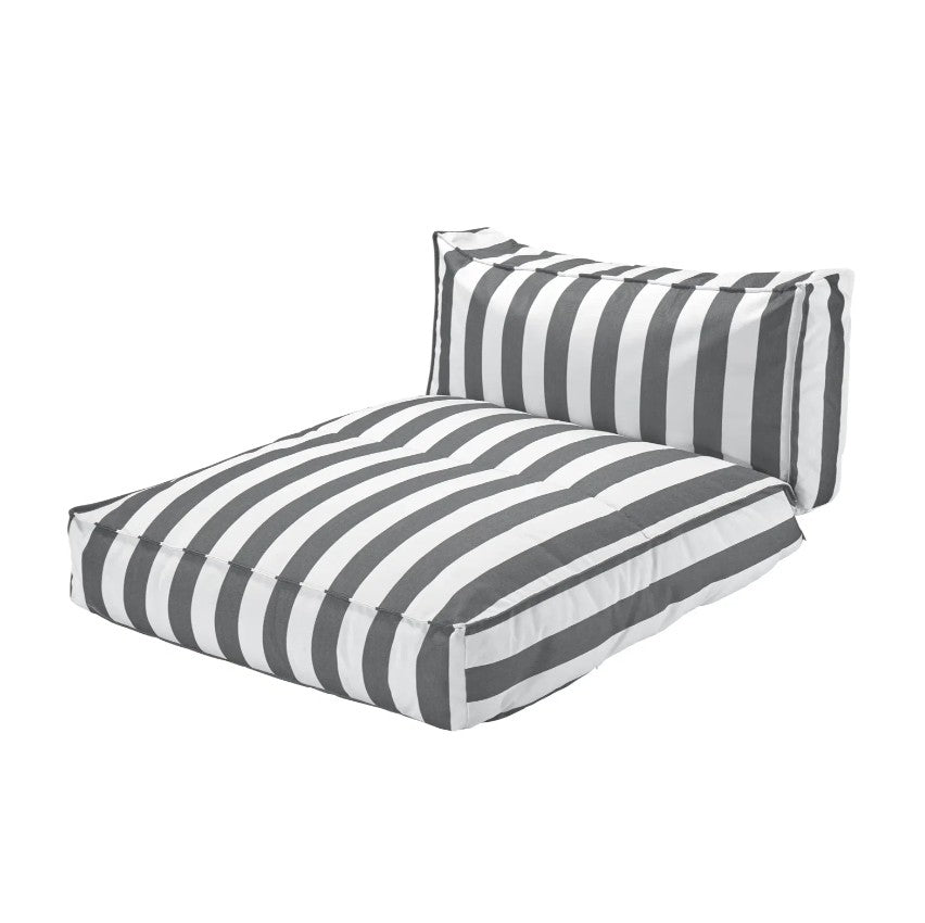 The STAY bed tempts you to stay and enjoy the warm season outside in a relaxed way. The outdoor lounger made of water-repellent material in light grey promises the ultimate relaxing feeling. The high-quality, weatherproof textile is also easy to clean and UV-resistant. The cushion filling made of environmentally neutral EPS beads makes the lounger stable in volume and shape. And so comfortable that you won't even want to get up. Due to the lightweight materials, the bed can be moved comfortably on the terrace or in the garden. The bed is available in different sizes, fabrics and colours. A matching seat pouf to extend the lying surface and cosy cushions complete the stylish outdoor furniture range. Includes metal bracket to adjust the angle of the back section.