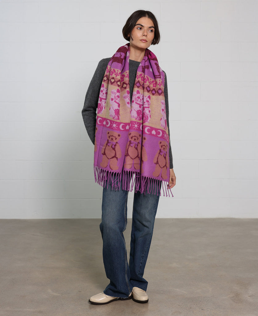 Made from a blend of 70% recycled acrylic, the Purple Gang Scarf is soft, warm, and radiant—designed to brighten up the coldest days with its vivid charm.