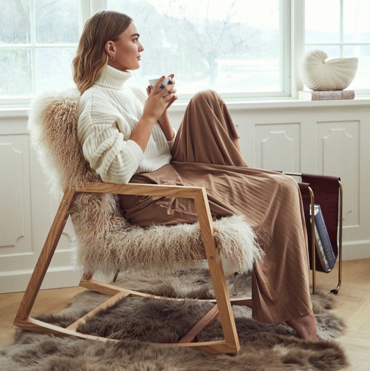Indulge in luxury with our oak or ash rocking chair. Meticulously crafted with oil-treated wood, this Nordic design piece offers unparalleled quality. Enhance your living room or bedroom with its presence. A sheepskin seat cushion from our NC Studio adds comfort and elegance. With a nod to nature, our Danish brand stands for timeless design and sustainable craftsmanship. Choose the one that suits you best - both promise a special place in your home.