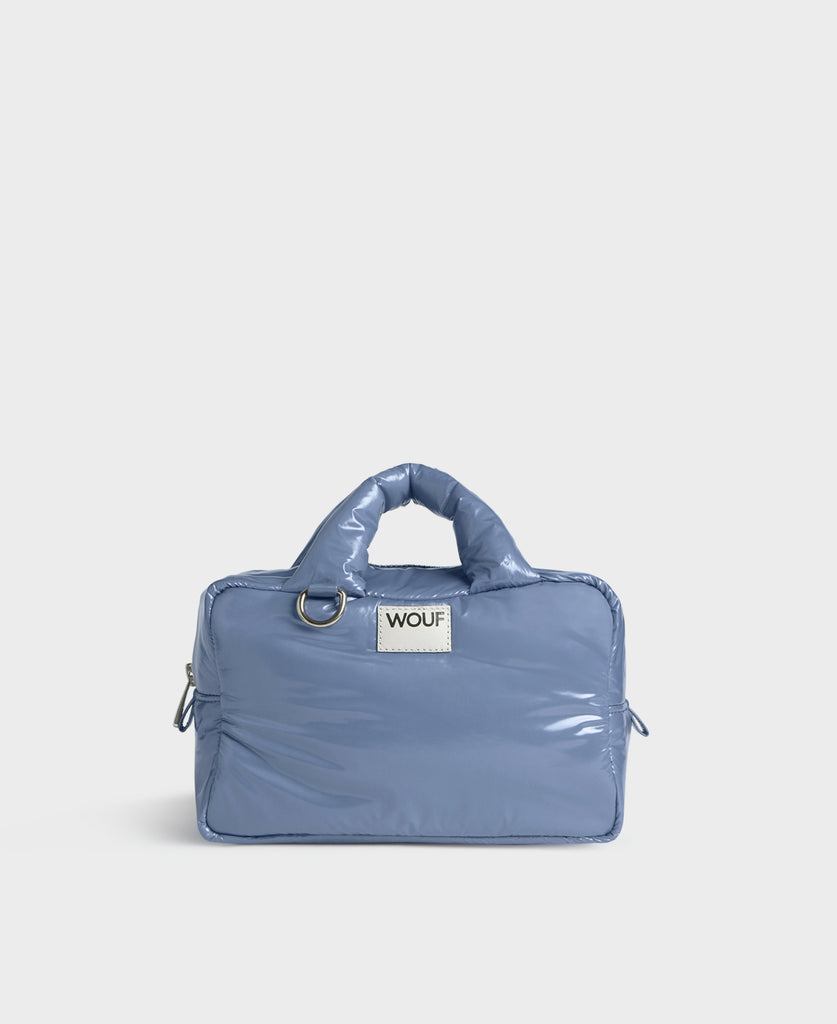 The Royal toiletry bag, made from 100% recycled fabrics, is designed to carry your personal care items with a shiny finish. It features a water-repellent surface, a main zipped compartment, an inner pocket, and two top handles for easy organisation and transport.