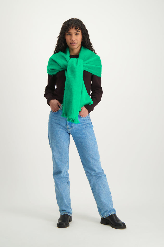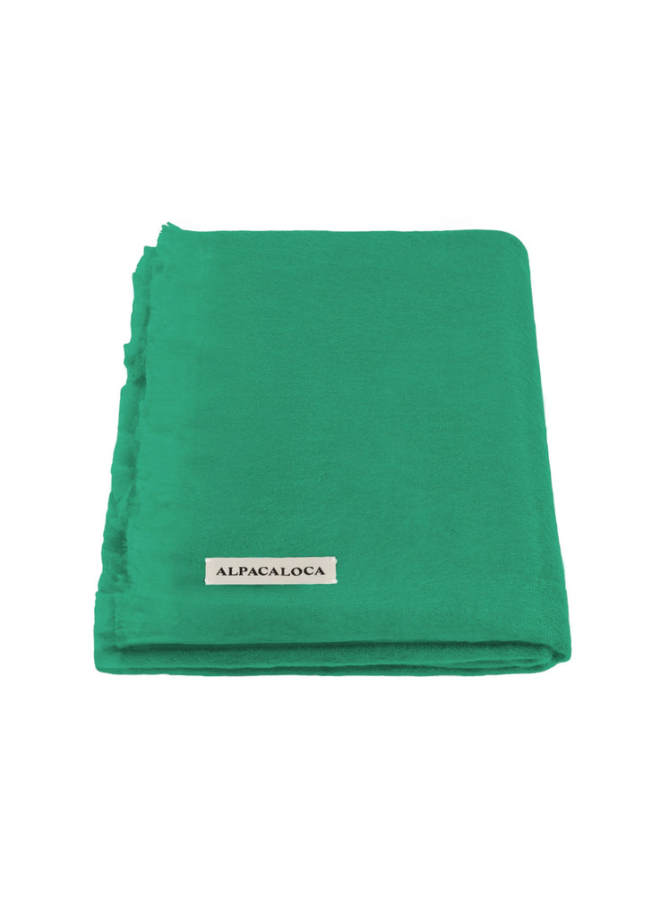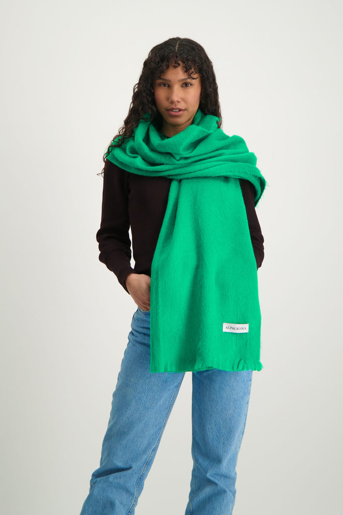 Our single-woven scarf is incredibly soft and drapes beautifully due to its supple and lightweight structure. The hollow fiber retains warmth, providing excellent protection against wind and cold. The subtle wool sheen adds a touch of luxury to the scarf. Please note that the composition and dimensions may vary due to the manual production process in the wool weaving communities. Size: 200 x 65 cm. Material: 80% alpaca 20% acrylic. Color: Green.