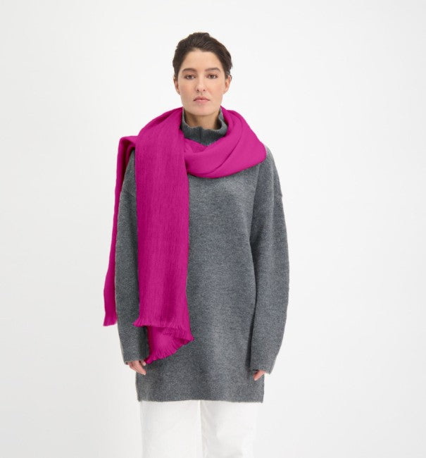 Our single woven scarf is incredibly soft and drapes beautifully due to its smooth and lightweight structure. The hollow fiber helps retain warmth, providing excellent protection against wind and cold. The subtle wool shine adds a luxurious feel to the scarf. Size: 200 x 65 cm. Material: 80% alpaca, 20% acrylic. Color: Brown. Gender: Unisex.