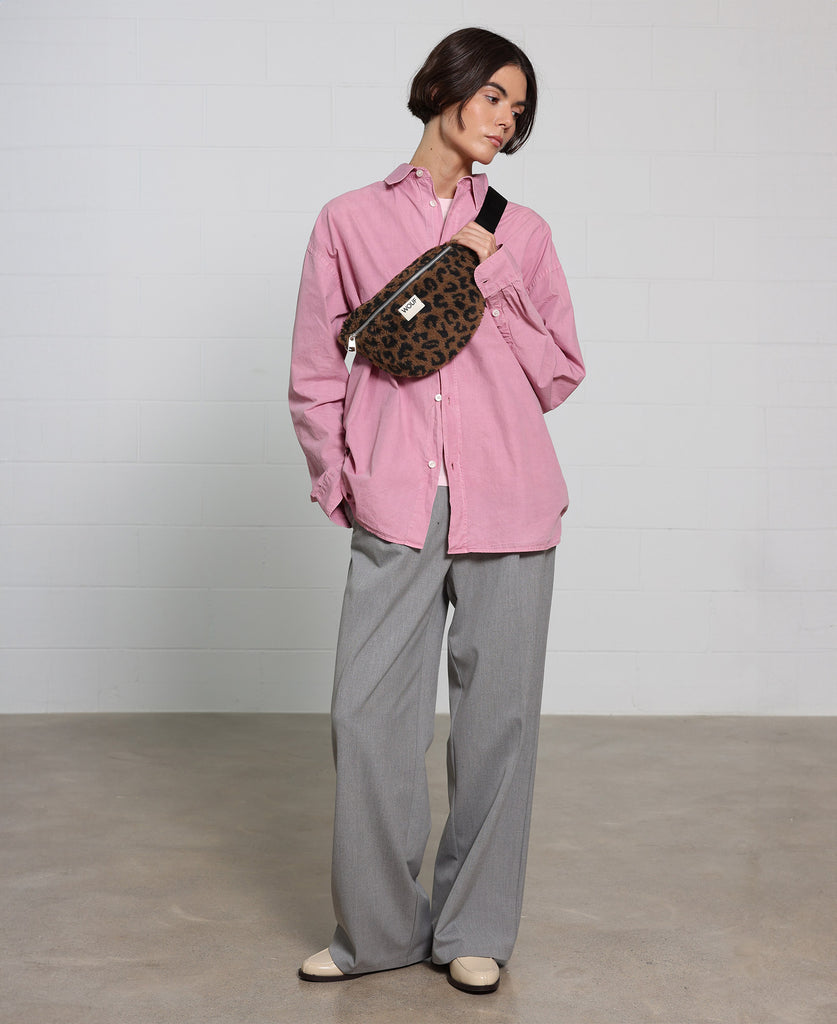The Simona waistbag, made with a jacquard technique using 70% recycled fabric from post-consumer plastic bottles, offers hands-free practicality with a soft textured finish. It features an adjustable strap, a main zipped compartment, and an inner pocket to keep your essentials organised.