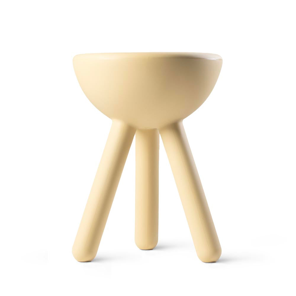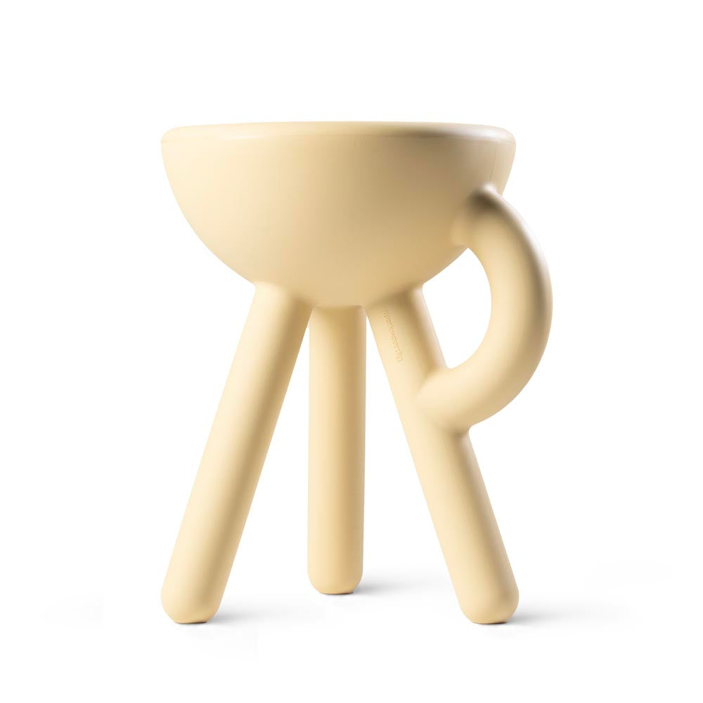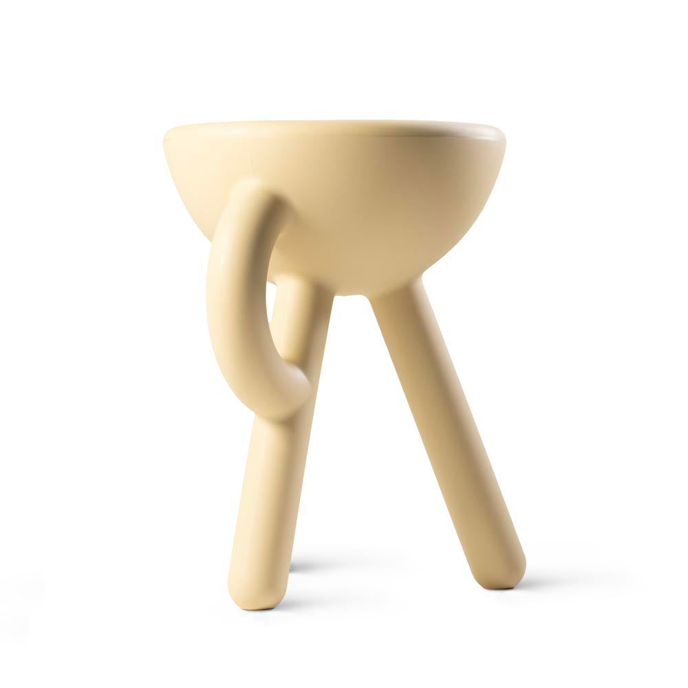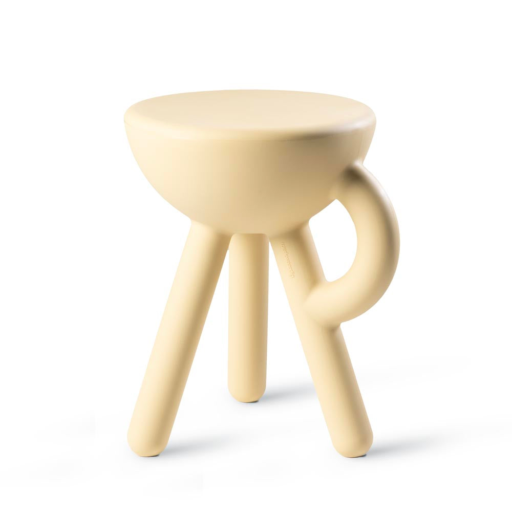 The product can be used as stool or sidetable and has a thick, round ear on the side. This makes it look extra tubby and easy to move around.