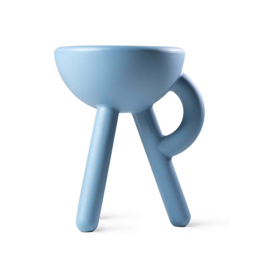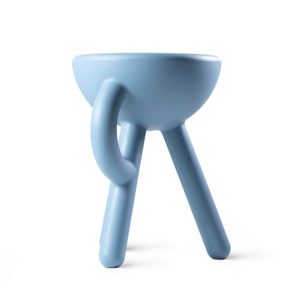 The product can be used as stool or sidetable and has a thick, round ear on the side. This makes it look extra tubby and easy to move around.