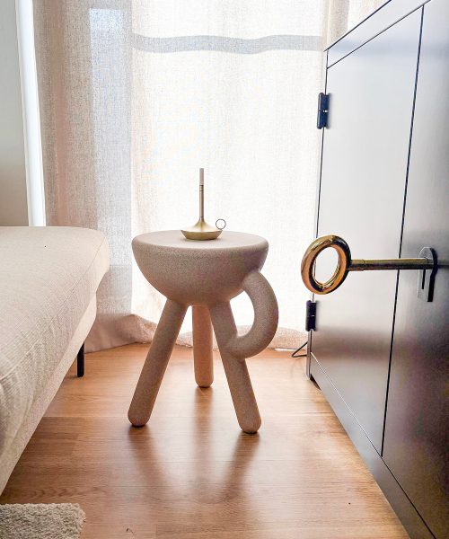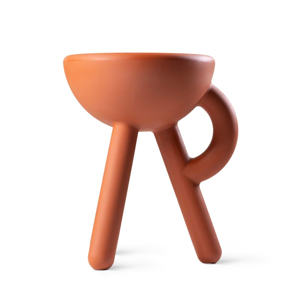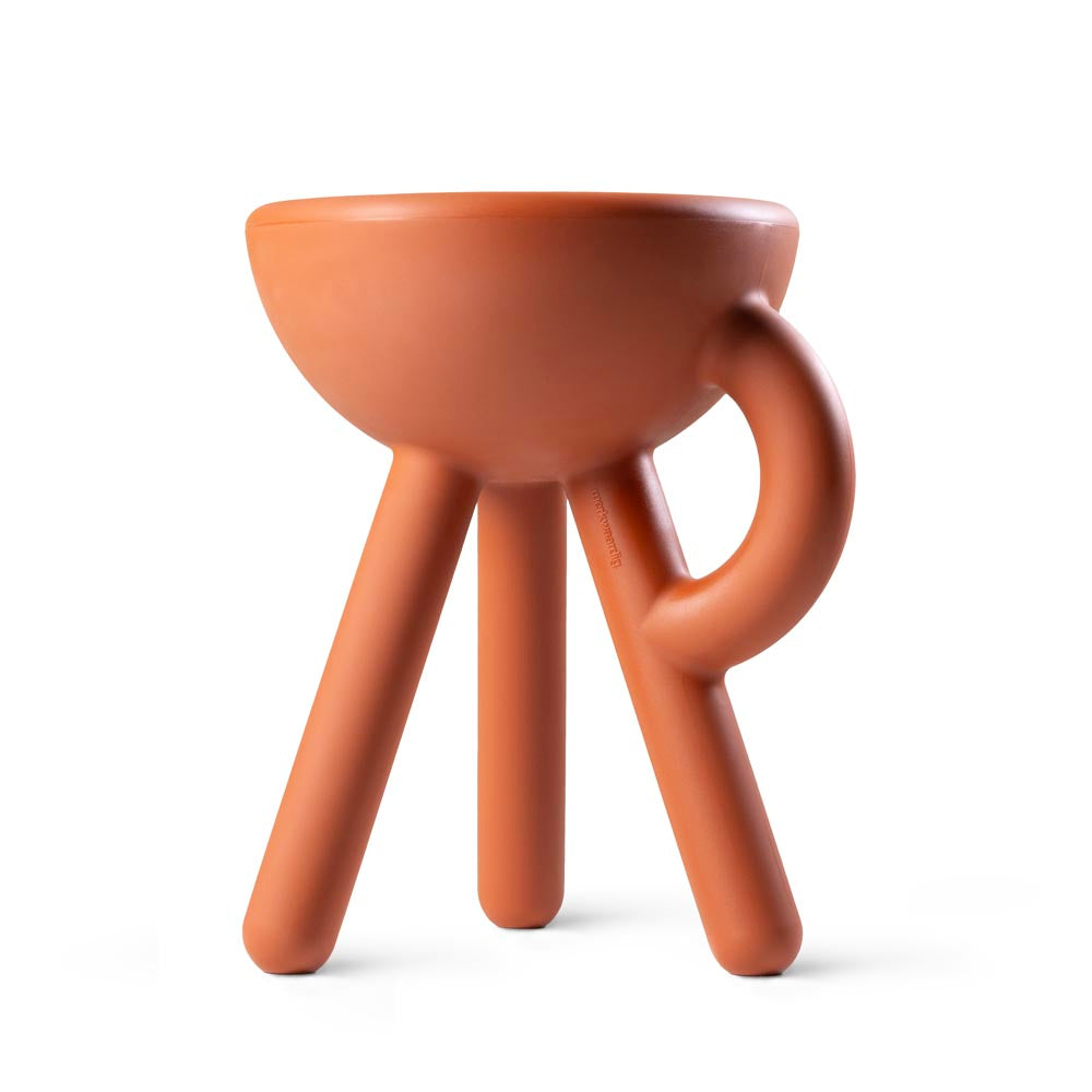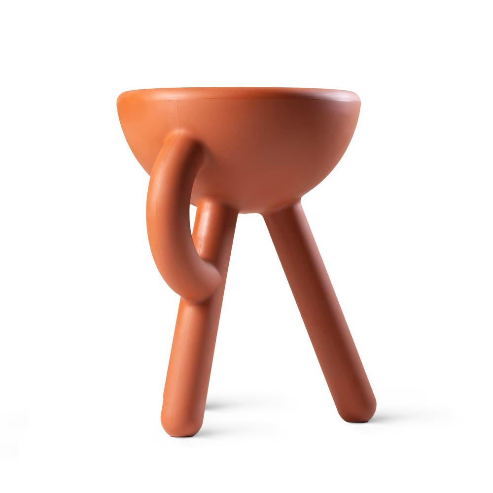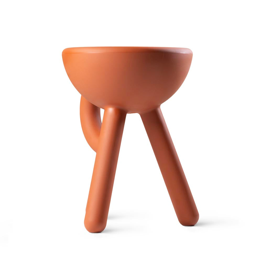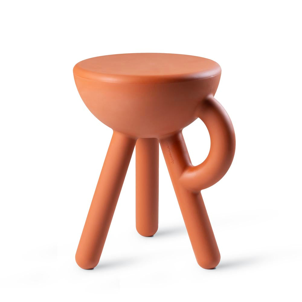 The product can be used as stool or sidetable and has a thick, round ear on the side. This makes it look extra tubby and easy to move around.