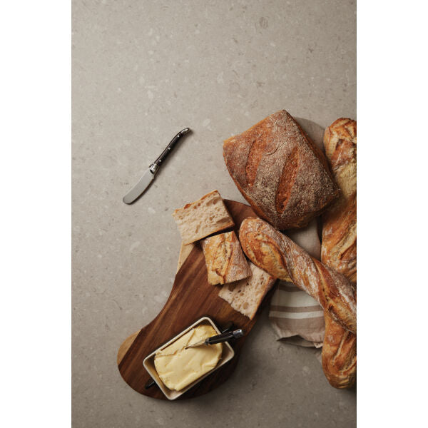 Exclusive 2-piece stainless steel butter knife set. These knives are perfect for spreading butter or jam on toast, bagels, muffins and more. The high-quality stainless steel blades ensure a smooth and effortless spread, while the sturdy pakka wood handles provide a comfortable grip. The set comes packed in an exclusive gift box, making it an ideal gift for any occasion.