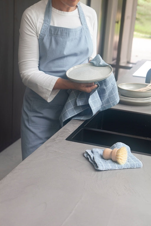 This Walra kitchen apron is both practical and stylish! The subtle blue color and stonewash finish give it a beautiful vintage look. The convenient storage pocket holds all your kitchen tools, while the adjustable neck strap ensures a comfortable fit. Made of 100% cotton, it's soft and durable. You can wash the apron at 40°C and tumble dry afterwards.