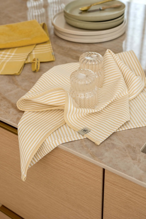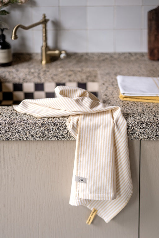 The premium kitchen and tea towel set by Walra includes two tea towels: the Superior Dry cloth with a striped pattern, and the Superior Glass cloth with a diamond pattern. It also features one kitchen towel: the Superior Kitchen cloth, ideal for drying hands. Made of high-quality material for excellent absorbency, these towels are equipped with a convenient loop. With timeless and classic designs, they complement any interior decor. Wash at 60°C and tumble dry on a low setting.