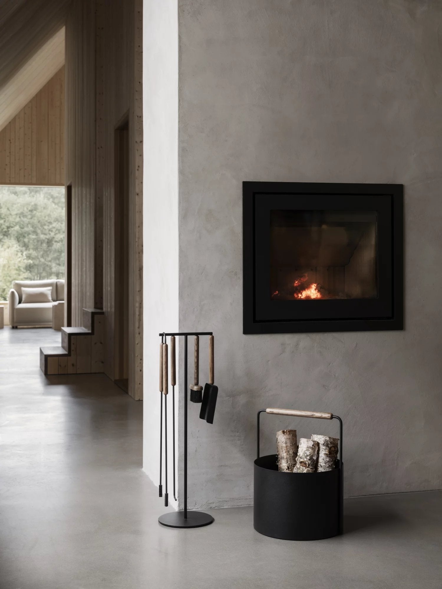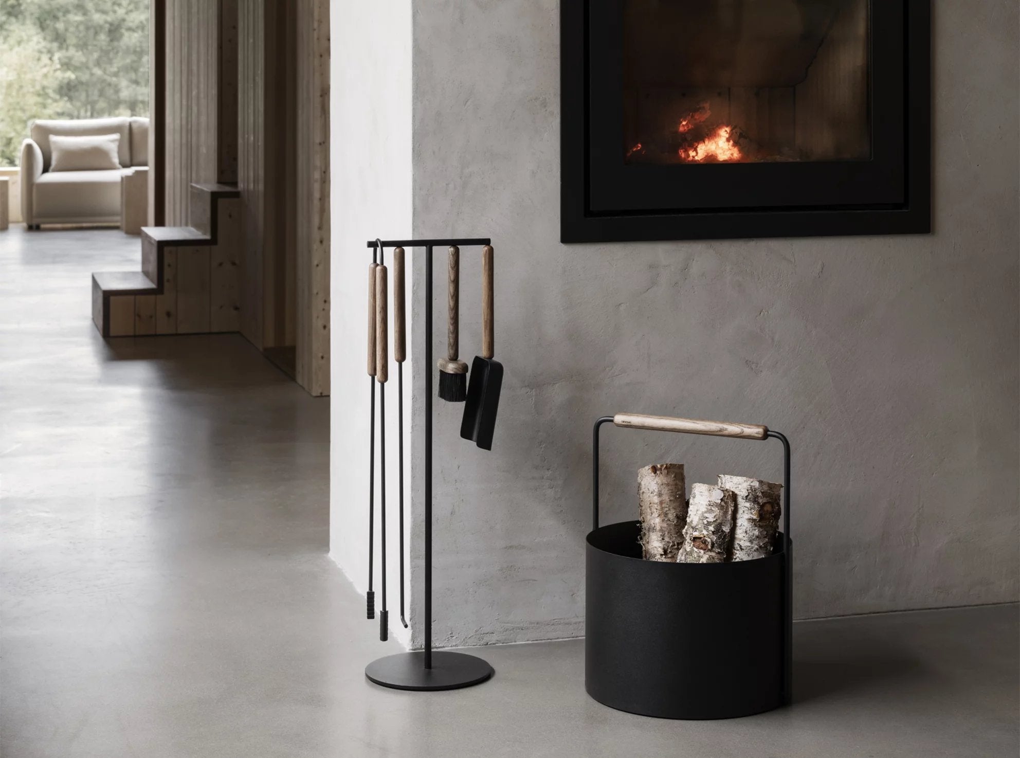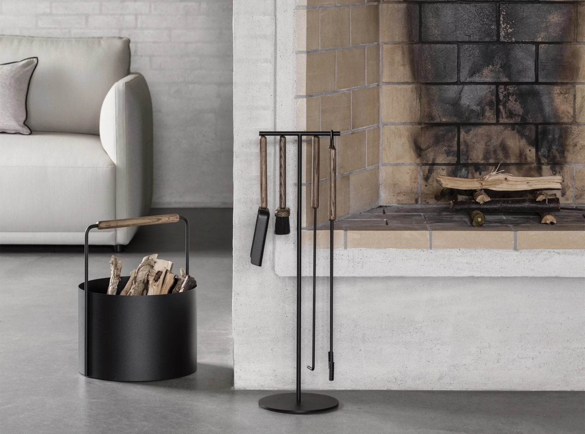 The oak handles contain a magnet that holds the cutlery securely on the coated stand. The ASHI range offers different variants for a cosy, warm fireplace atmosphere.