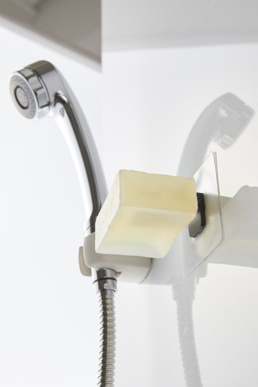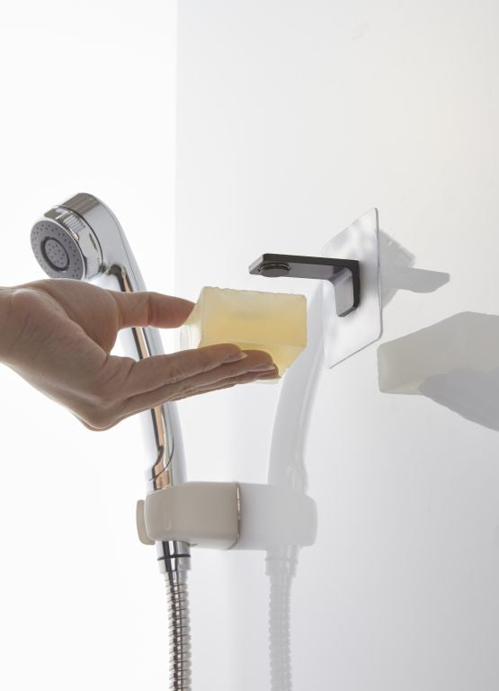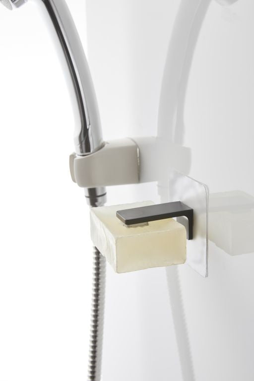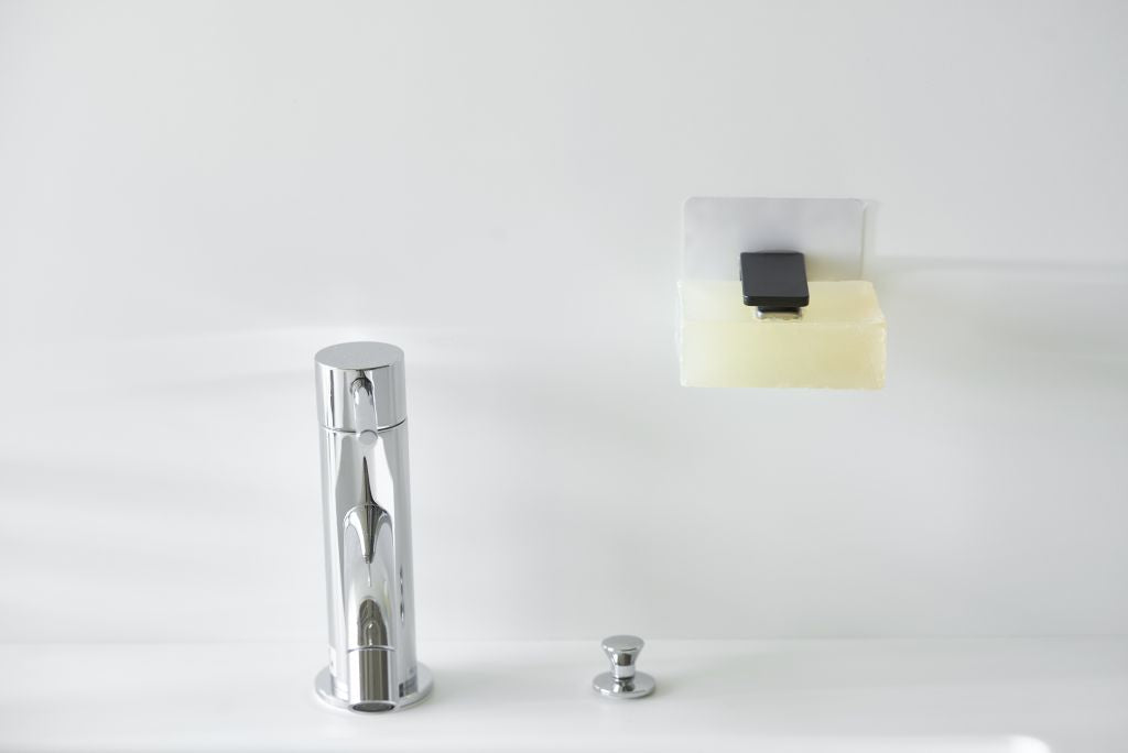 The Yamazaki soap holder saves precious space on your sink as it effortlessly mounts to the wall. In addition to this space-saving feature, the holder also ensures that the soap dries better, making it last longer. The installation process is simple: after cleaning the wall, you can stick the included hook on a flat wall surface and snap the soap holder onto it. Then, place the steel plate in the soap and hang it on the spider using the magnet.