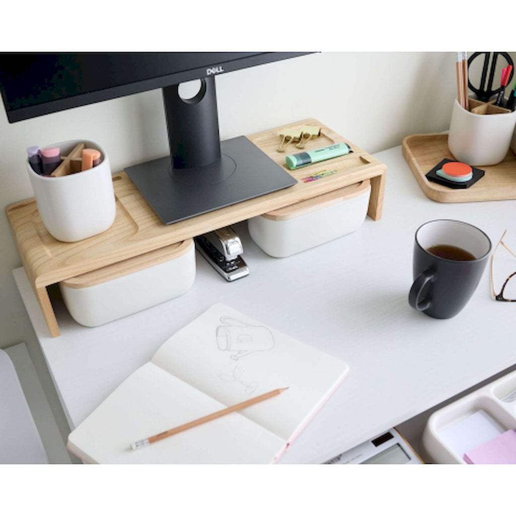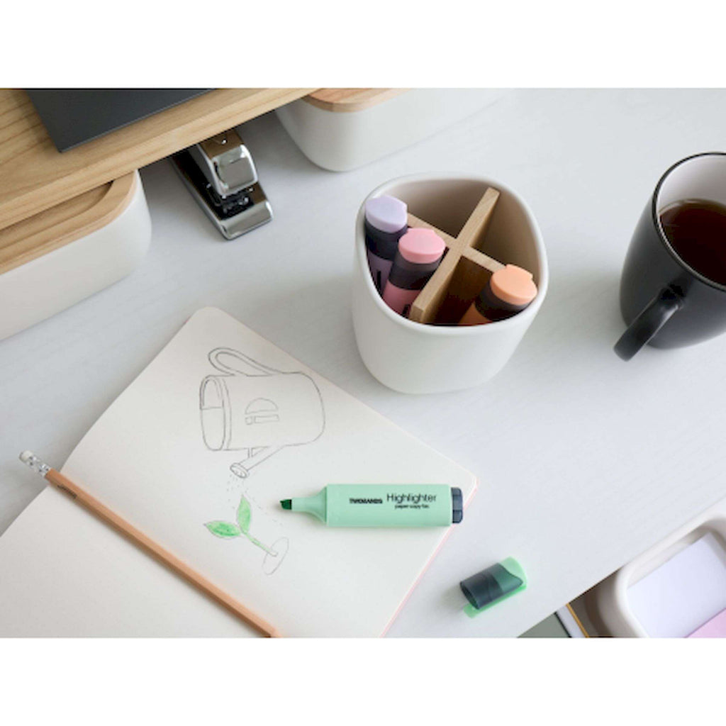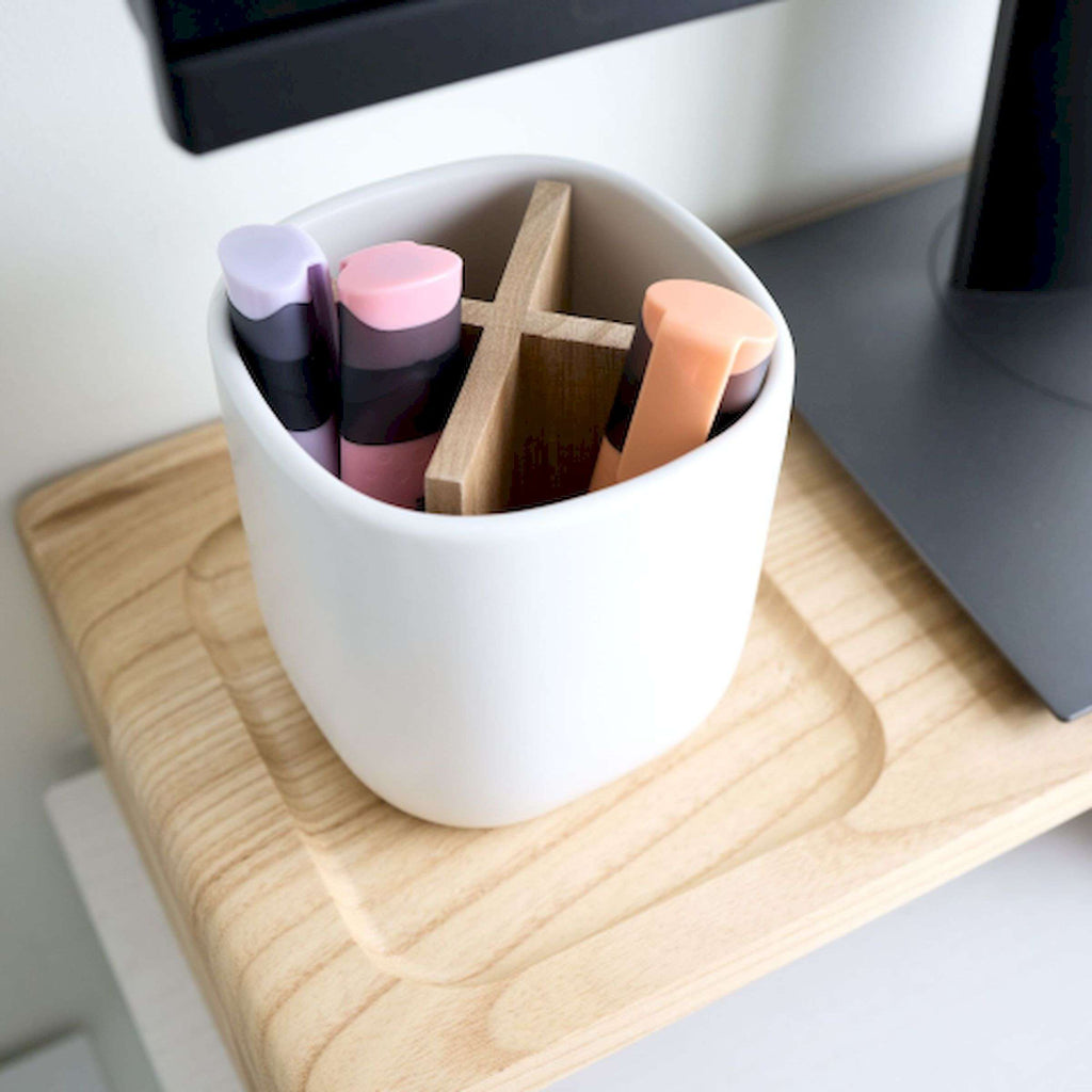 Experience the joy of an organized desk with the Eco Office Storage Cup with Compartment, part of the iDesign product series. This white and brown storage cup measures L. 10.2 x W. 10.2 x H. 10.4 cm, providing space for all your essential office supplies. The compartment allows you to easily categorize and keep your belongings within reach. Made from durable ceramic, this storage cup is sturdy, while the paulownia wood gives it a stylish and natural appearance, making it the perfect addition to any desk. Stay organized and stylish with the Eco Office Storage Cup with Compartment from iDesign.