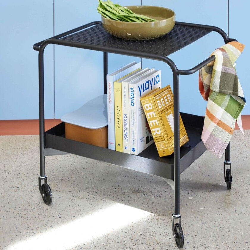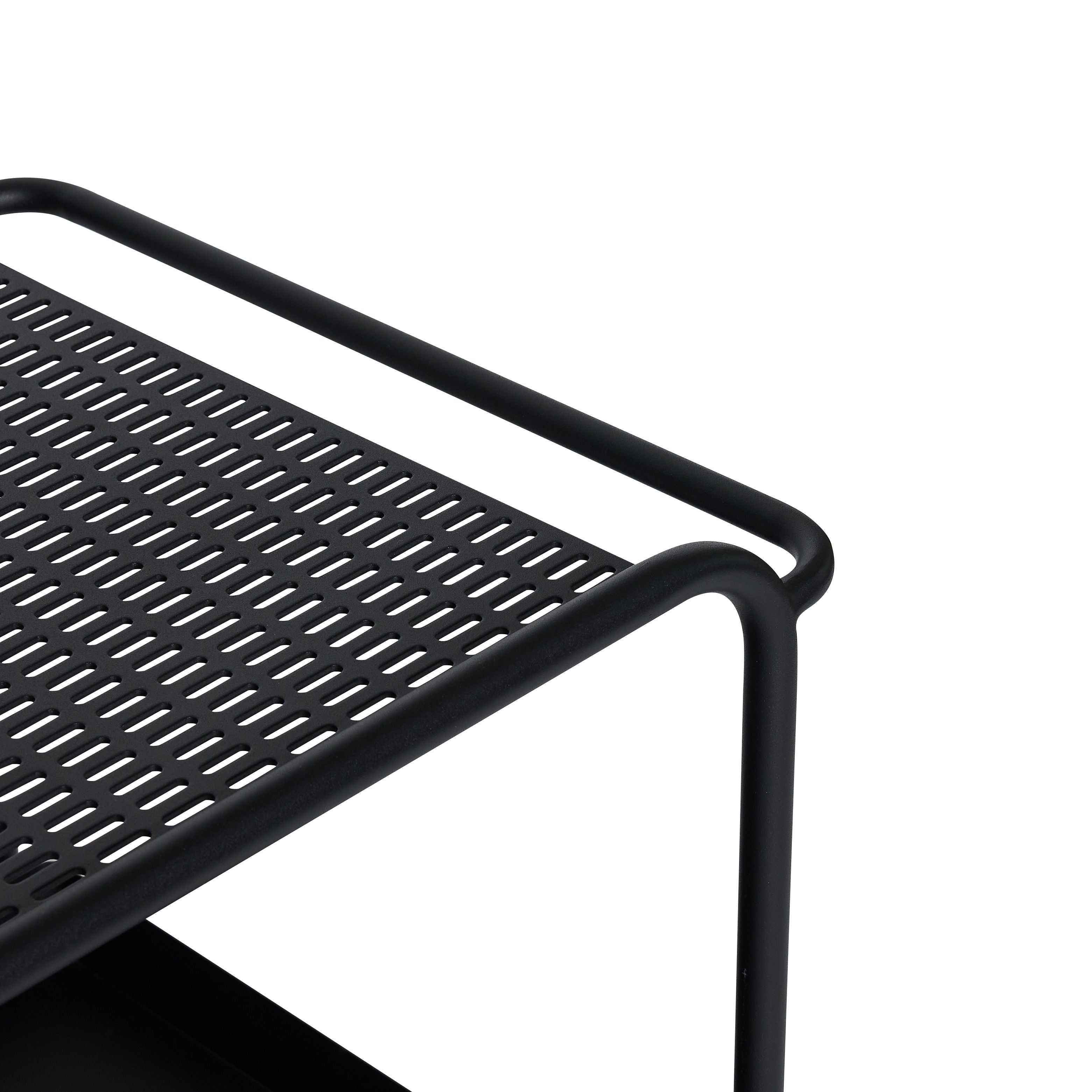 Uncover the elegance of 'The Classic Trolley,' set to become your new cherished companion in both organising and enhancing your living area. This trolley, constructed from sturdy metal and finished in a sophisticated black, easily fits into any nook of your abode. Whether it's acting as a mini-bar, a snack hub, or a mobile book repository, its versatility shines through. Perfect for use in the kitchen or the living area, you’ll delight in its smooth manoeuvrability. Indeed, this is an essential item to ensure all your favourite things are easily accessible and movable.