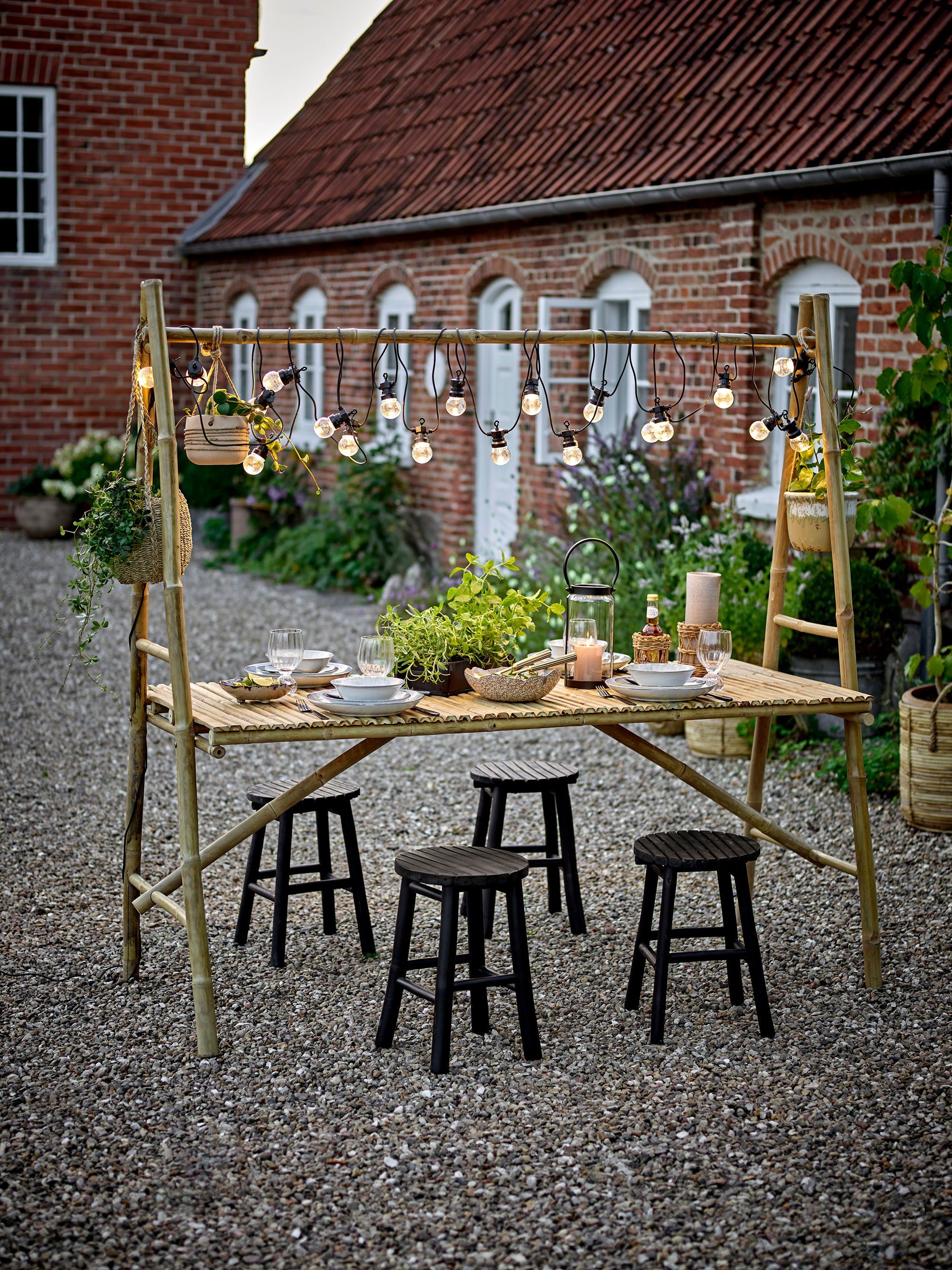 The Malo Dining Table by Bloomingville is made of bamboo which adds a natural and cozy look to your outdoor setting. The console table is perfect for cozy displays both indoors and outdoors. Style the bar with hanging flowerpots and likewise and enjoy the blooming atmosphere. Take good care of your bamboo furniture by placing it in a covered area. Clean with a moist cloth and rub in tested furniture oil.