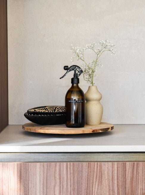 When using the spray, turn the trigger cap slightly. Always spray away from your face and body. Ensure you hold the bottle upright and spray in circular motions into the space. Always screw the cap of the bottle back on to seal it.