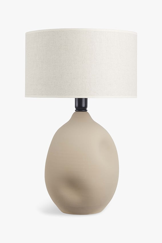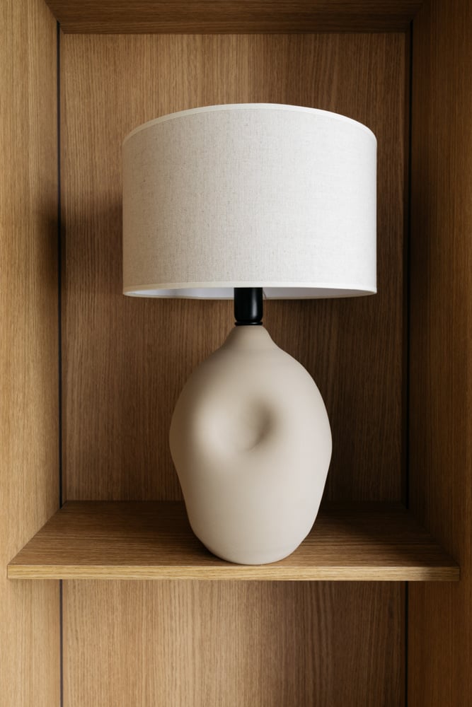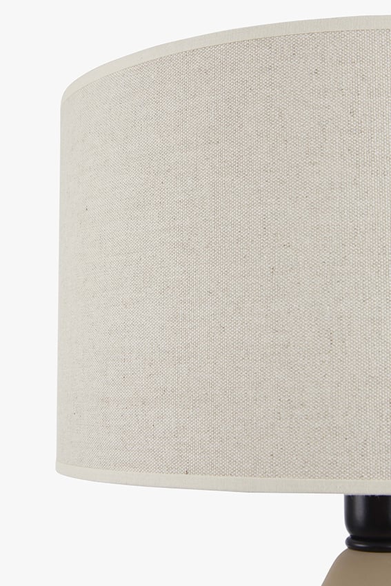 Table lamp Liz is a true reflection of traditional Spanish craftsmanship, a natural color palette, and premium materials. The base is handmade from durable earthenware. The sand-colored organic shape gives Liz a unique, sophisticated look. The linen shade with piping adds a soft, natural texture that beautifully complements the earthenware. The linen diffuses the light and creates a gentle atmosphere. The neutral colors of the earthenware and linen make the table lamp timeless and suitable for various interior styles. Each lamp base is meticulously handmade, making the organic shape unique for each lamp. Liz has a total height of 60 cm. The lampshade has a diameter of 35 cm and a height of 20 cm. The base is 42 cm high and 27 cm wide. The base comes with a linen cord and plug.
