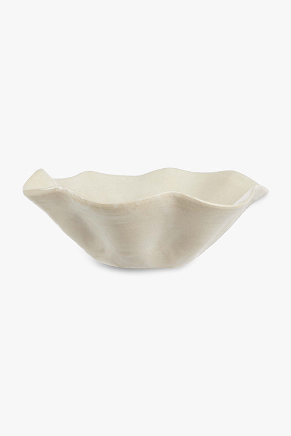 The rolling shapes give bowl Kate an aesthetically soft character. Each bowl is a unique item crafted with care and precision by hand in a small ceramic studio in Portugal, made of earthenware. The ecru-colored bowl has a subtle sheen with crackle due to the glazing, making it water-resistant. Kate combines the aesthetic with the practical: besides being a beautiful object in the interior, it can also be used as a dish for presenting lovely jewelry. Bowl Kate has a height of 8 cm and a diameter of 25 cm. The shape and dimensions may vary slightly per item.