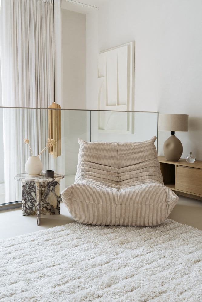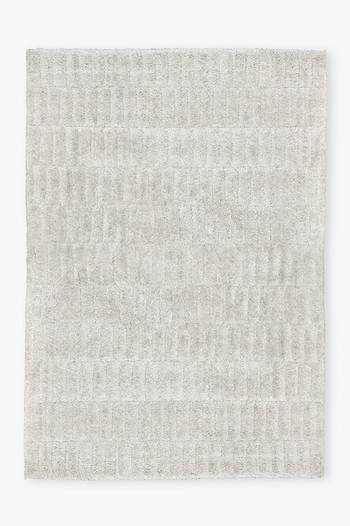 The natural ecru color and the high-pile elegant tile pattern of carpet Stella exude warm sophistication. Crafted in a Belgian weaving mill, Stella is face-to-face woven, creating a soft, high pile. Made from a premium blend of wool, PES, and Decolan, Stella is durable with a luxurious, soft feel. Finished with a festoon stitch on the long sides and folded on the short sides, the jute backing adds extra strength and keeps the carpet in place. For maintenance, wool fibers are naturally dirt-repellent, while Decolan and polyester are durable and easy to care for. In case of spills, gently blot with a damp cloth.