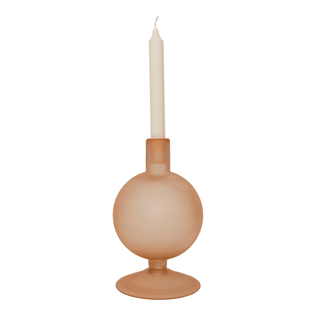 Admire the enchanting glow on Urban Nature Culture's Sopra candle holder and discover how candles evoke a poetic ambiance in any home. Crafted from recycled glass, this candle holder embodies simplicity, elegance, and thoughtful design. Thousands of glass fragments are reborn as a new piece, adding warmth and charm to your space. Available in olive green, cameo, or frosted peach whip, Sopra is the perfect addition to your décor.