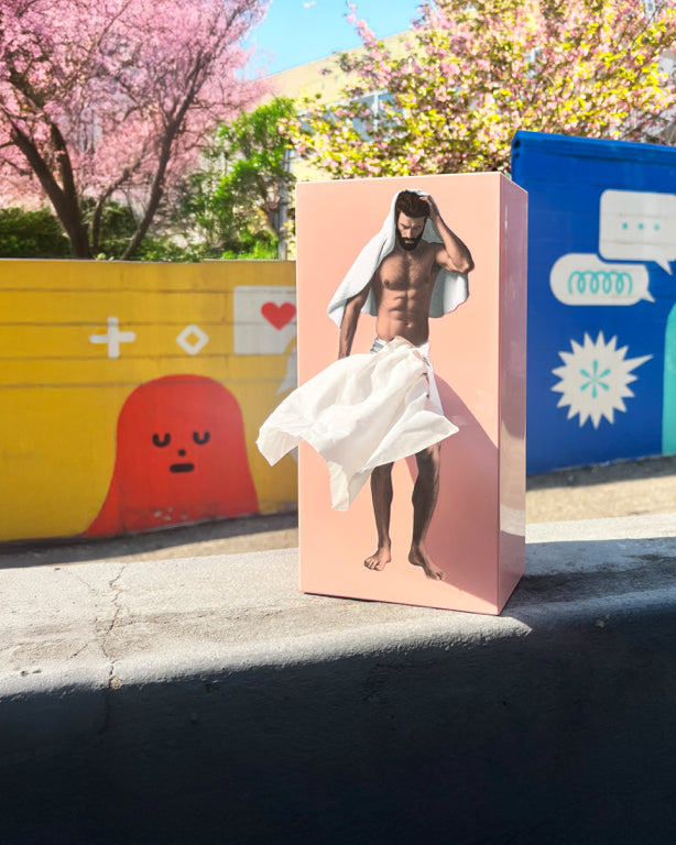 The Tissue Up Boy tissue holder by Spextrum is a colorful eye-catcher for the bathroom or living room, featuring a striking pink color and a humorous design. The holder depicts a man just out of the shower, with tissues cleverly covering him in the right places. Its weighted base ensures stability for easy one-handed tissue retrieval. This clever design enhances user comfort.
