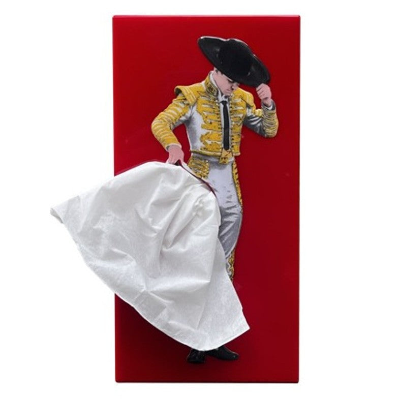 The Tissue Up Boy tissue holder by Spextrum is a striking and original addition to your interior, whether in the bathroom or living room. The design features a bullfighter ready to challenge the bull, with tissues playfully referencing the red cloth. The weighted inner part keeps the holder stable when a tissue is pulled out, providing extra comfort as you don't need to hold the box.