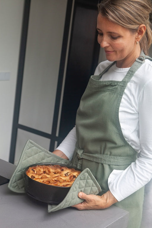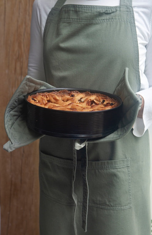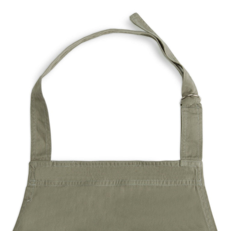 This Walra apron combines practicality with style. The subtle green color and stonewash finish give it a beautiful vintage look. It features a convenient storage pocket for kitchen utensils and an adjustable neck strap for a comfortable fit. Made of 100% cotton, it's soft and durable. You can easily wash it at 40°C and tumble dry.