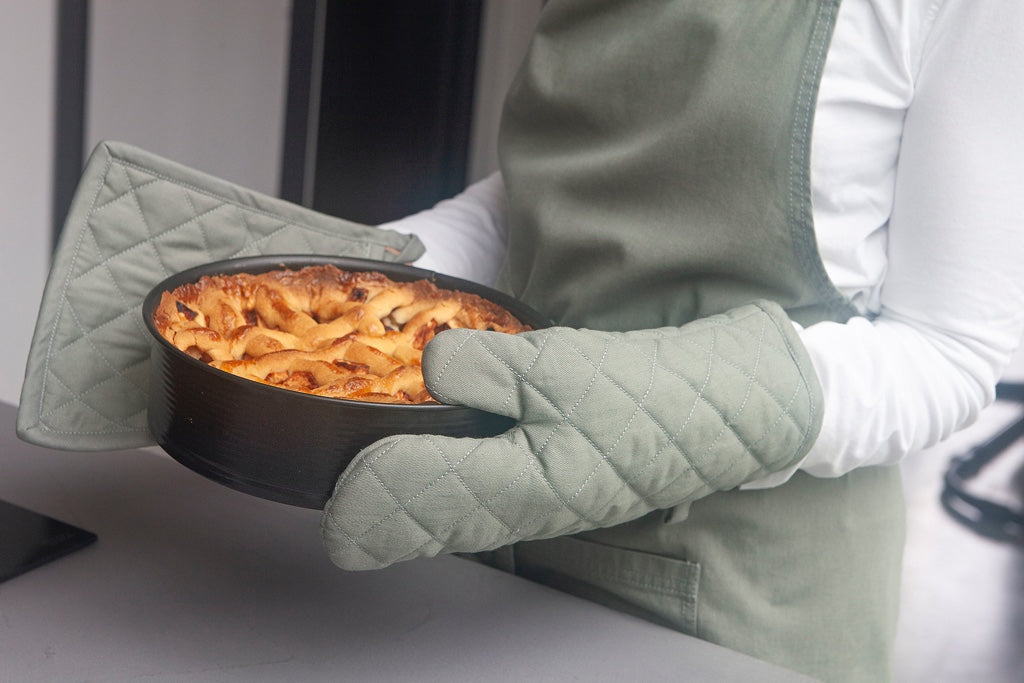 This Walra oven mitt, made of high-quality cotton, provides just the right thickness to safely handle hot dishes from the oven or stove. Its stylish diamond pattern and convenient loop allow easy hanging with other kitchen textiles. Washable at 40°C and suitable for tumble drying.